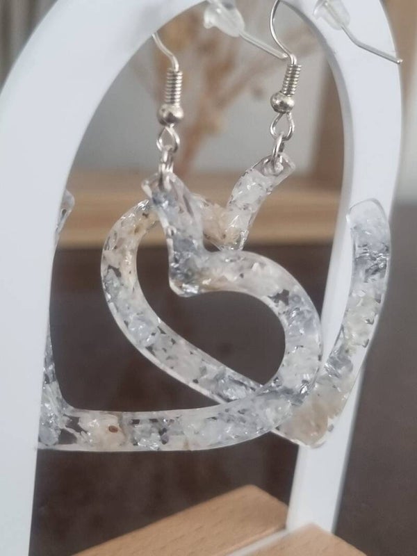 Ajoutez une touche d'élégance à votre look avec ces boucles d'oreilles en forme de cœur, fabriquées en acier inoxydable argenté et résine. Parfaites pour toutes les occasions, elles allient style intemporel et modernité. Faites sensation avec ces accessoires uniques et raffinés.