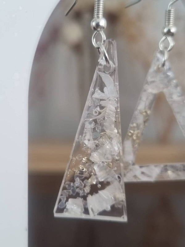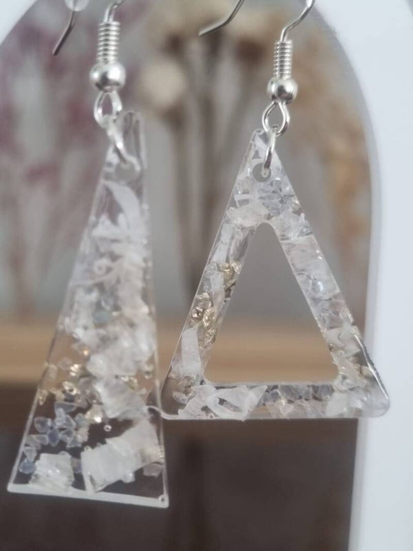Ajoutez une touche d'élégance à votre tenue avec ces boucles d'oreilles asymétriques argentées, ornées de fleurs naturelles. Parfaites pour un look unique et raffiné, elles sont légères et confortables à porter toute la journée.
