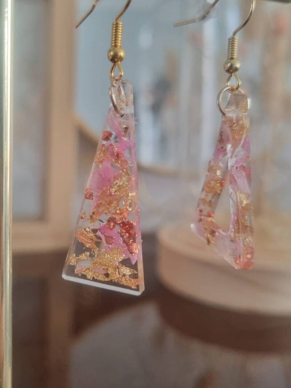 Découvrez l'élégance délicate des Boucles Charlotte. Parfaites pour ajouter une touche de glamour à votre tenue, elles capturent la beauté de la nature avec des pétales et des feuilles dorées enchâssés dans une résine cristalline. Portez-les pour briller à chaque occasion!