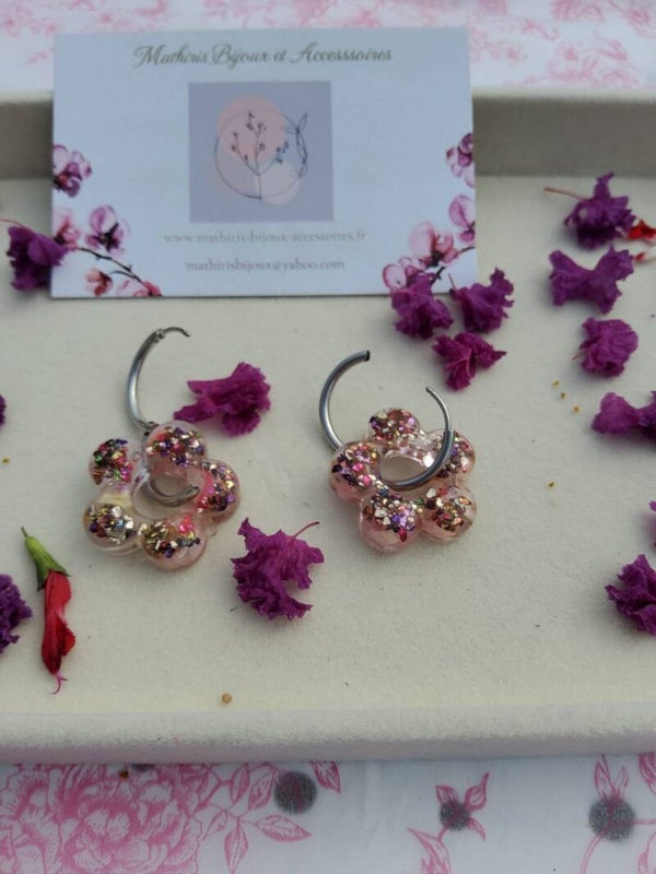 Amalia – Douce lumièreFleurs aux nuances miel et rose poudré, sublimées par des éclats dorés.Monture en acier inoxydable argenté, douceur et élégance au quotidien.