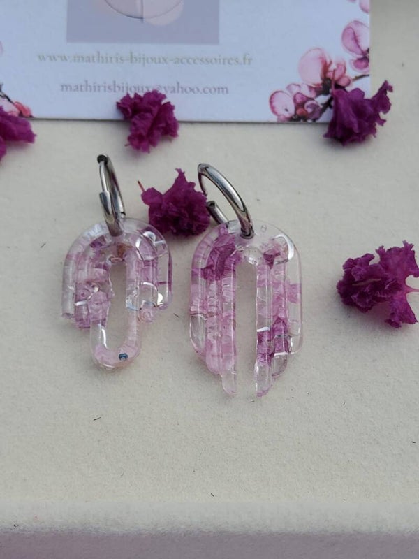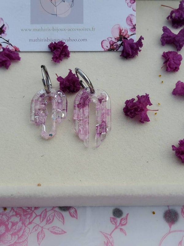 Garance – Rose tendreCréoles argentées ornées de pendentifs en résine transparente aux pétales roses naturels.Un bijou délicat et féminin.
