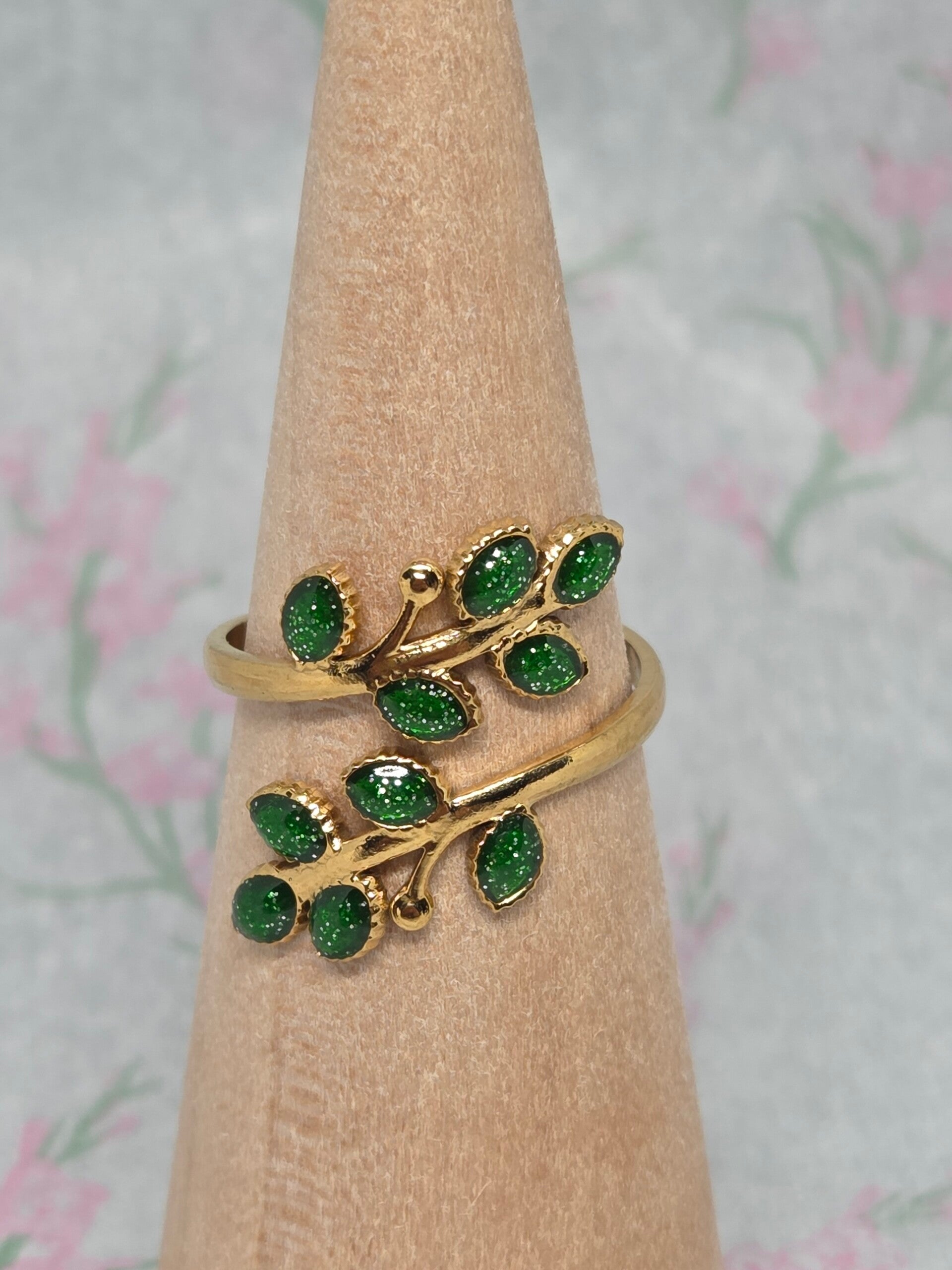 La bague Lyséa séduit par son motif végétal délicatement travaillé et ses touches vertes lumineuses. Un design inspiré de la nature, à la fois raffiné et original.